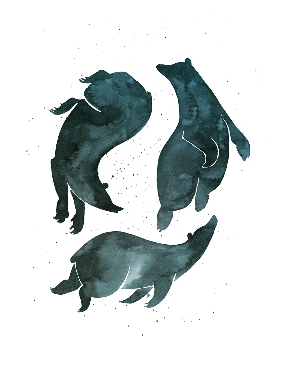 I love drawing bears. They show up all over my sketchbooks and in different ways, but they keep showing up. Here are some swimming through the dark pools of sleep.